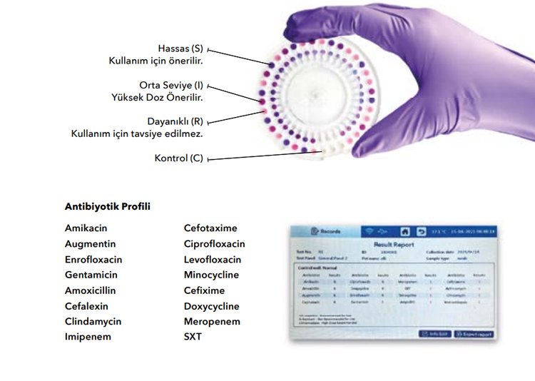 edilen antibiyotiklerin hassas (S), orta seviye (I) veya dirençli (R) olup olmadığını açıkça belirtir.