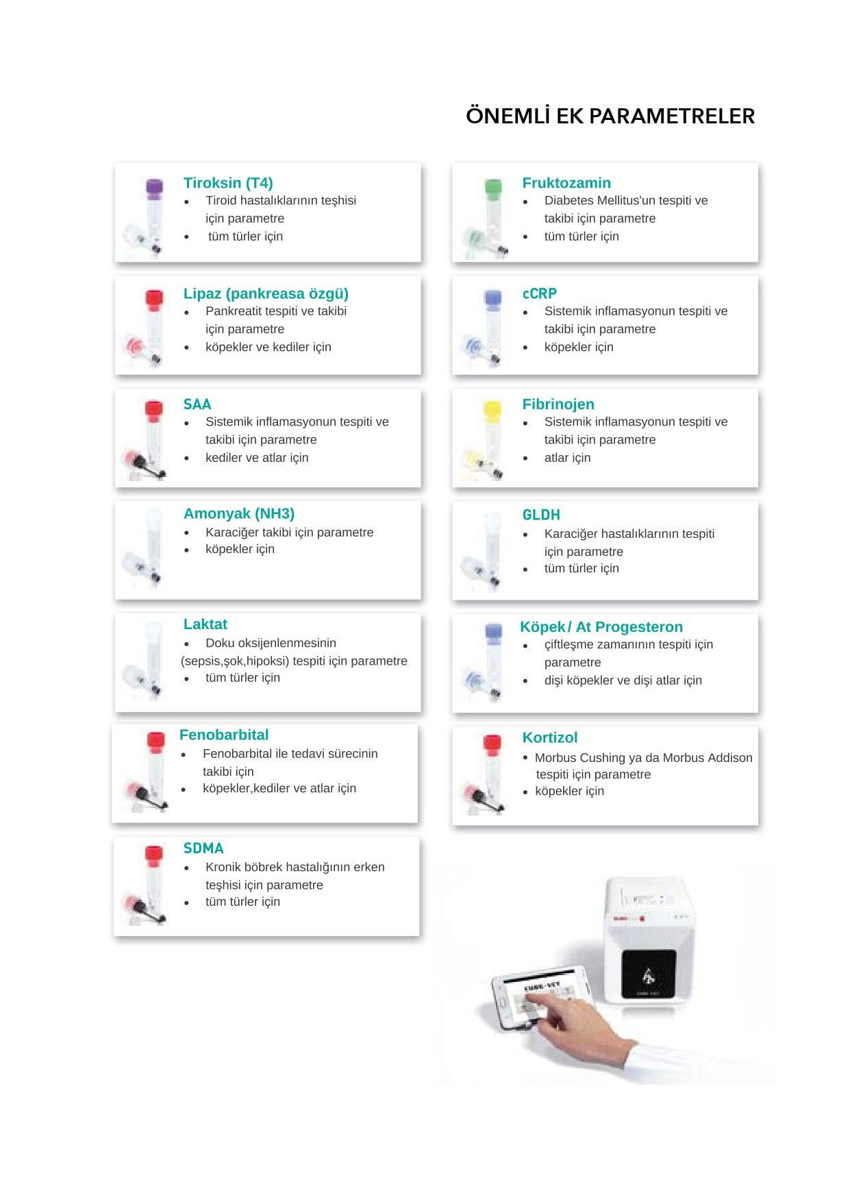 parametrelerini ölçerek klinik biyokimya profilinizi tamamlayabilirsiniz. EUROLyser CUBE-VET,